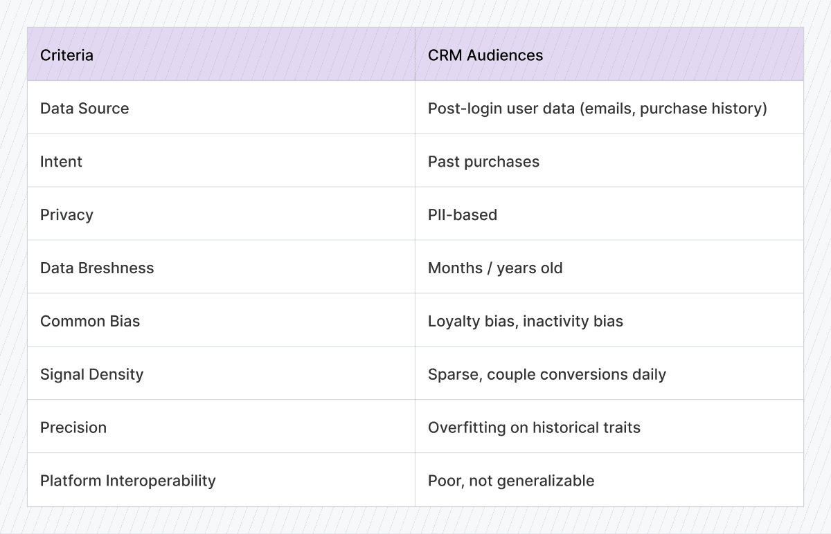 CRM lists send the wrong signals to modern ad algorithms. They’re outdated, sparse, and misaligned with how platforms find buyers today.